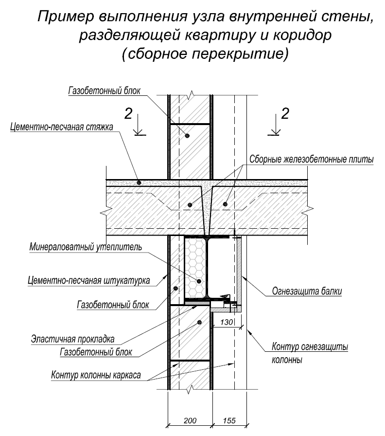 Стены “квартира-коридор” – керамзитобетонные блоки 190мм по ГОСТ 6133-99;