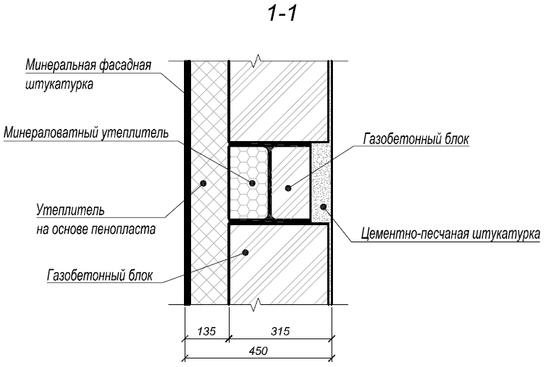 Наружные стены – ячеистые блоки 250мм по ГОСТ 21520-89, минераловатный утеплитель 150мм, фасадная штукатурка.