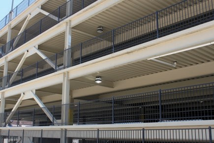 В наружном ограждении открытого гаража-стоянки должно быть не менее 50% проемов от площади внешней поверхности, иначе гараж-стоянка не будет открытой, то есть не будет иметь сквозного продувания. Также в дневное время не требуется искусственное освещение открытого паркинга. В качестве ограждений могут быть использованы натянутые тросы, парапеты высотой не более 1 м и другие конструкции.