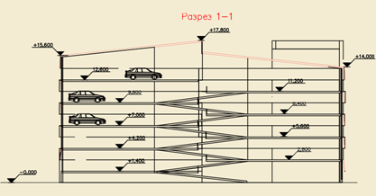 через полуэтажи автостоянки. Уклон рампы – 13%. На рампе предусмотрены тротуары