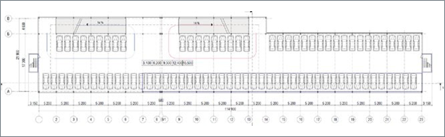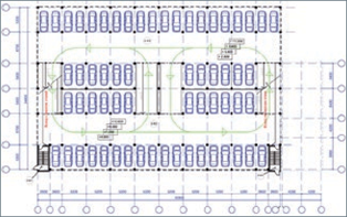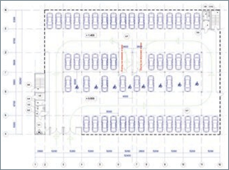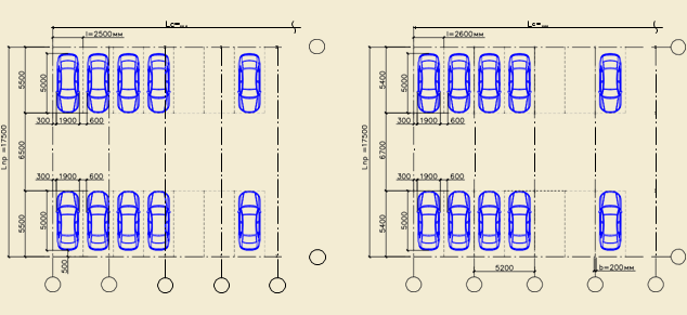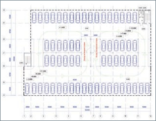 Рис.2 Расстановка автомобилей в двухрядном пролете
