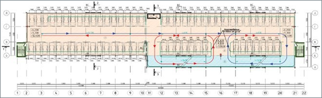 по вертикали организовано по встроенной неизолированной двухпутной рампе с транзитным