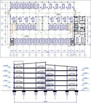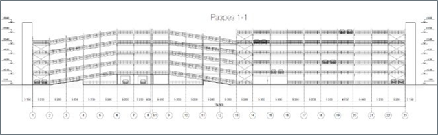 5-этажного надземного гаража-стоянки на 299 машино-мест. Габаритные размеры здания – 52,4х35,2 м. Шаг колонн –