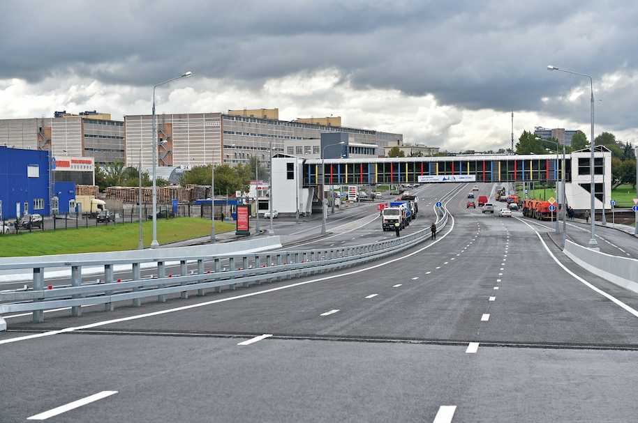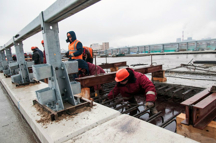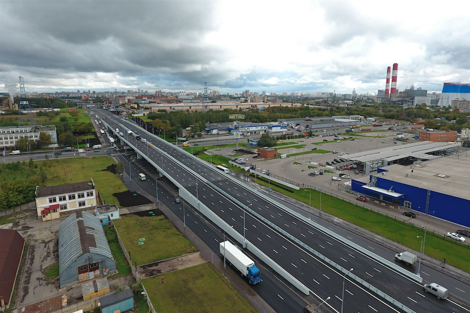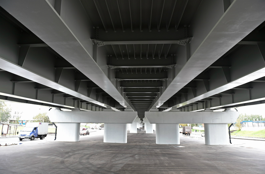 Разработаны проекты металлических пролетных строений для новой эстакады прямого хода и пешеходных мостов в составе Северо-Западной хорды в г. Москве. Главной особенностью конструкции эстакады стало металлическое неразрезное пролетное строение с ортотропной плитой по схеме 38,3 + 53,3 + 63,0 + 53,0 + 38,0, с полной длиной оси 246,1 м, его ширина достигает 26,6 м, пролетное строение имеет в плане криволинейное очертание по радиусу.