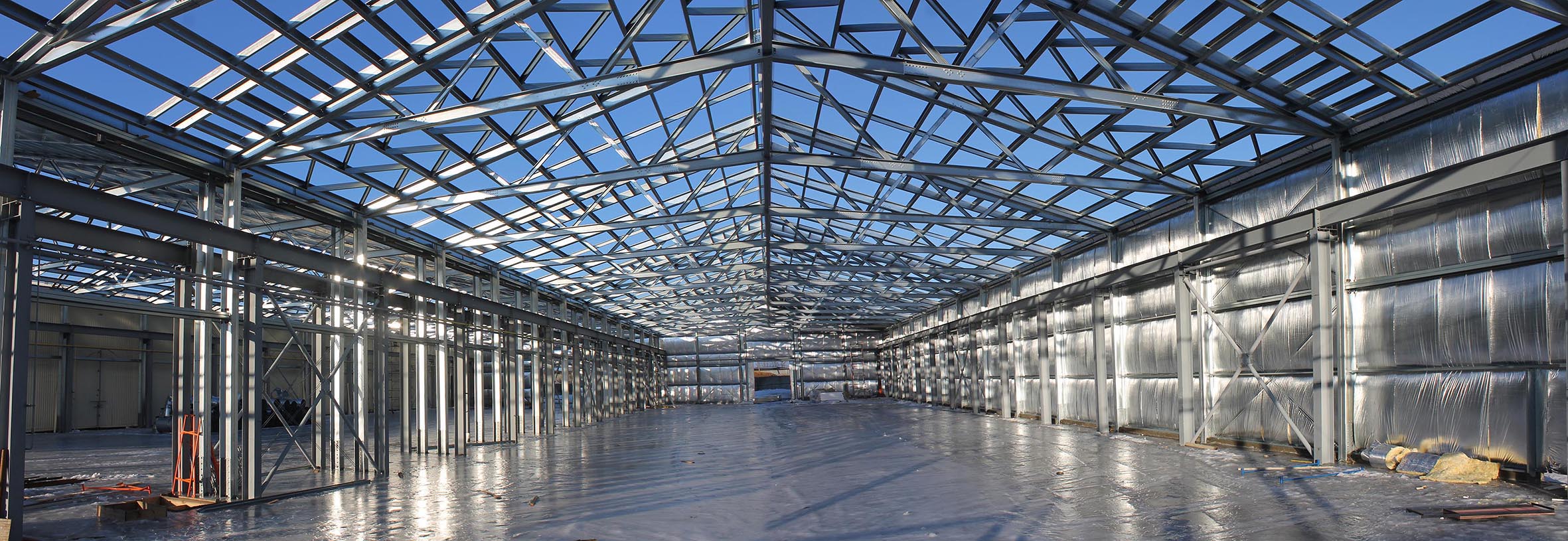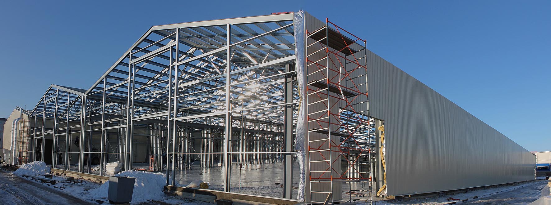 Серийное решение СТЕРК® имеет широкий набор опций: число пролетов до 7, пристройки, этажи, несущие перегородки, навесы. По заданию возможны разные типы кровли: одно- или двускатная, плоская, многоскатная.