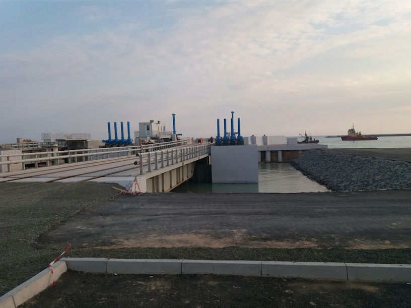 За четыре месяца был разработан проект металлоконструкций пролетных строений двух подъемно-переходных мостов с механизмами их подъема и опускания. Металлические пролетные строения длиной 27 и 33 м под совмещенное воздействие автодорожной и железнодорожной нагрузки приводятся в рабочее положение современной системой домкратов, управляемых автоматизированной системой, что максимально исключает необходимость влияния на работу моста человеческого фактора. Подъемно-переходные мосты обеспечивают возможность загрузки морских паромов вагонами с грузами и автомобилями.
