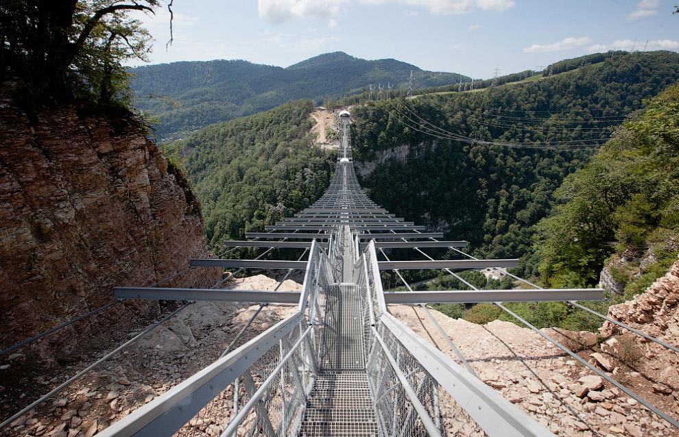 Мост является самым длинном подвесным пешеходным мостом в мире: его протяженность составляет 439 м. Находится в живописном месте Ахштырского ущелья над рекой Мзымта на высоте 207 м над землей. Строительство продолжалось 2 года. При сооружении моста было использовано 740 тонн металлоконструкций и 2000 куб.м бетона.