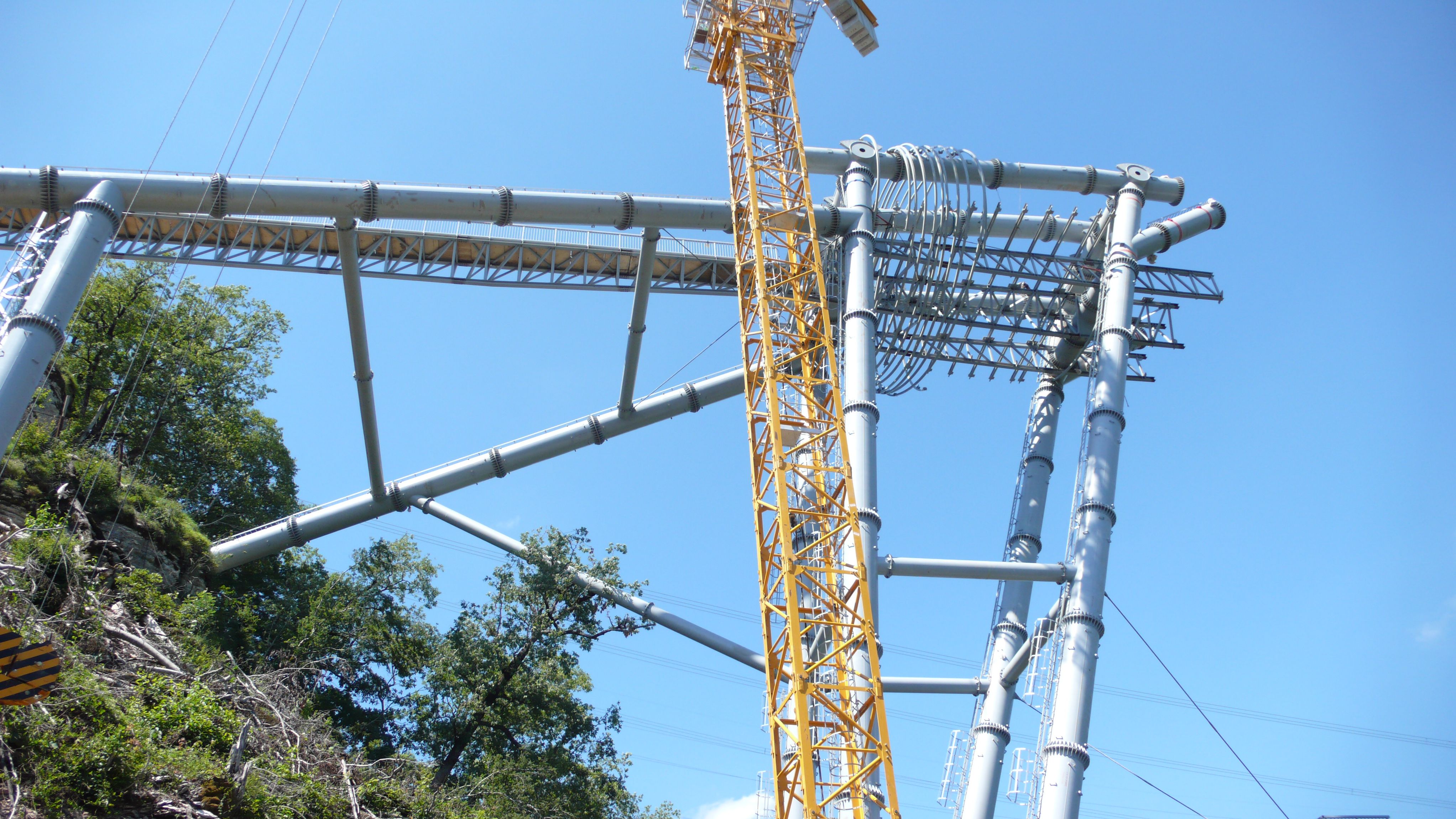 Конструктивно представляет собой стойки из круглой трубы с площадками по сторонам ущелья и балки самого моста, подвешенные на системе тросов.